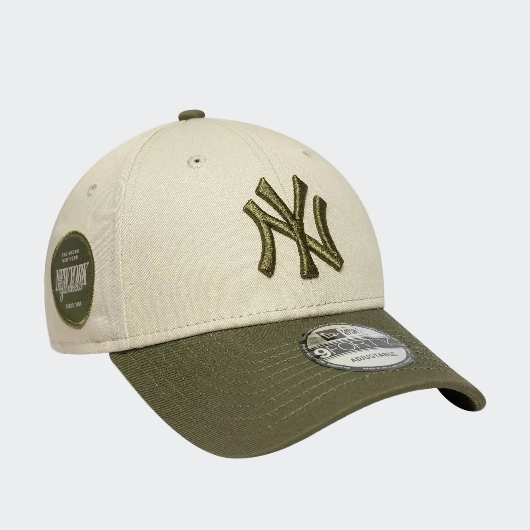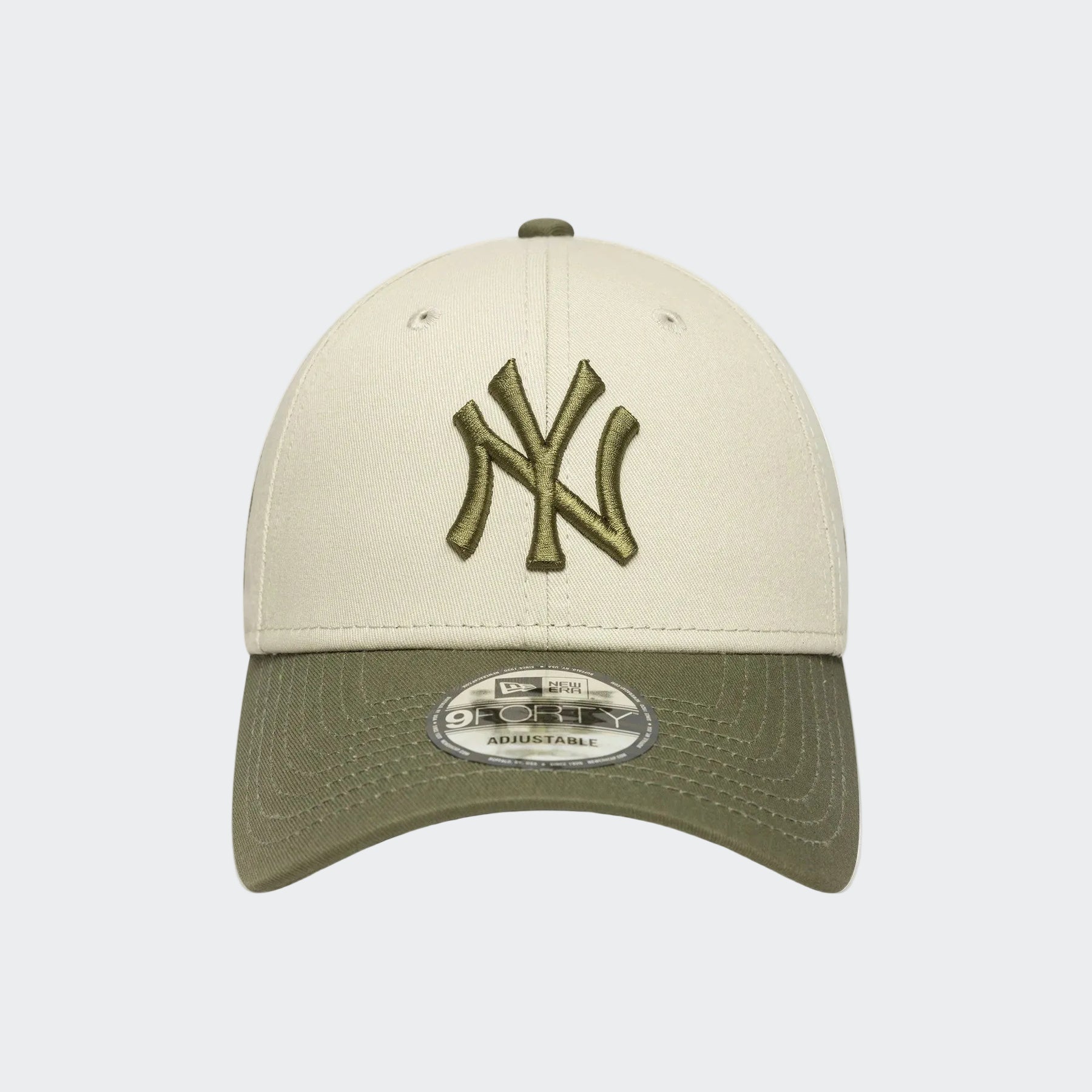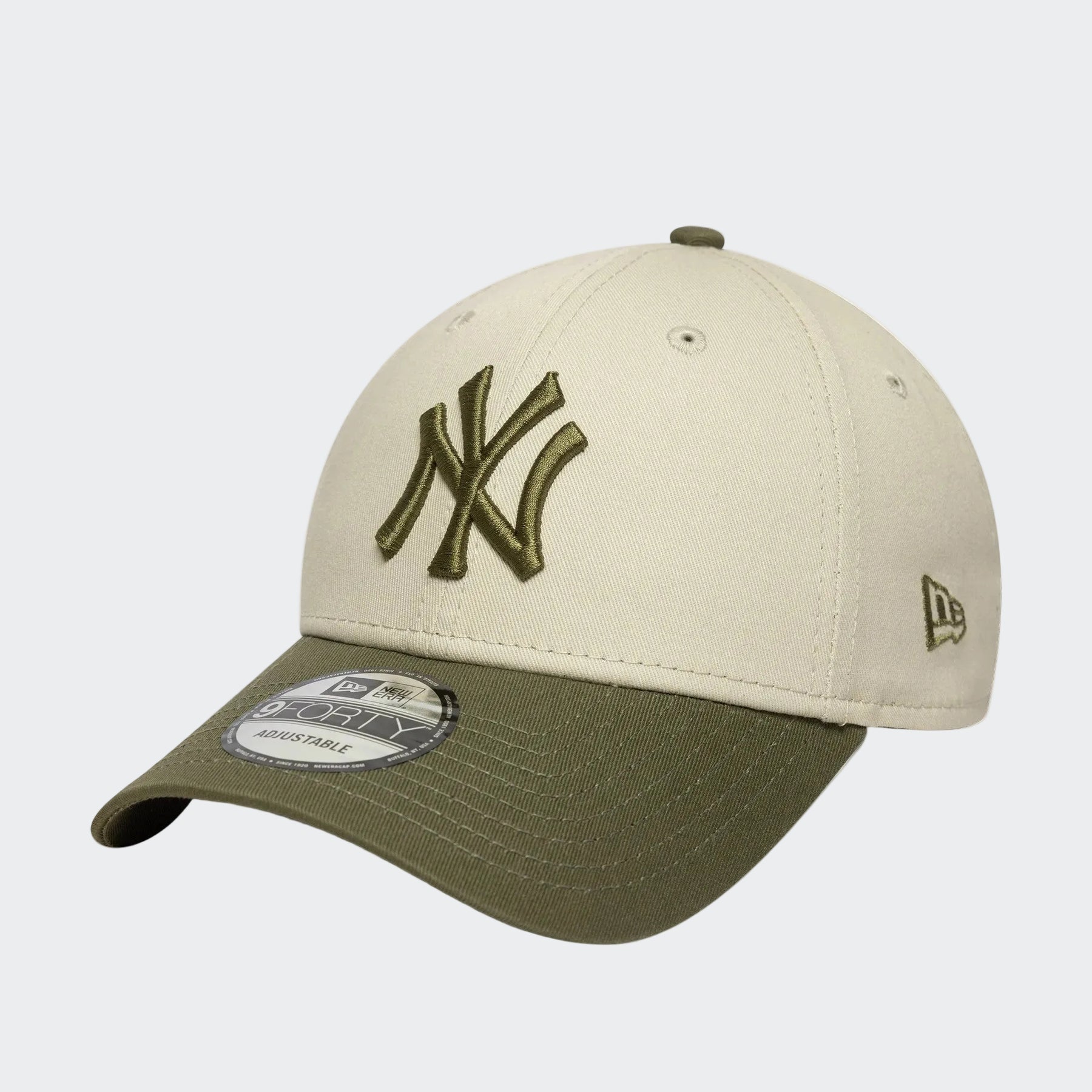 Classic baseball cap from New Era in the iconic 9FORTY fit, featuring an embroidered New York Yankees front logo. Designed in a clean beige colorway and made from 100% cotton for everyday comfort, with an adjustable rear strap for a personalized fit. Officially licensed by MLB.