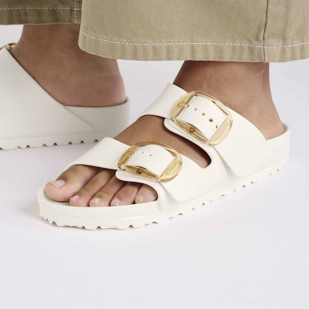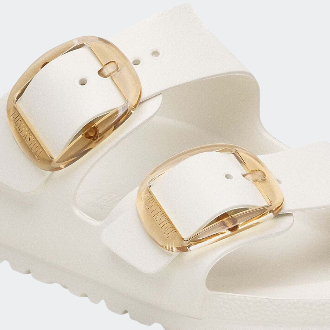 Big buckles, bold presence. The water-friendly version of the beloved Arizona Essentials sandals now features oversized transparent buckles for a modern statement look. Lightweight, easy to clean and designed with anatomical foot support, these sandals combine comfort, durability and effortless summer style.