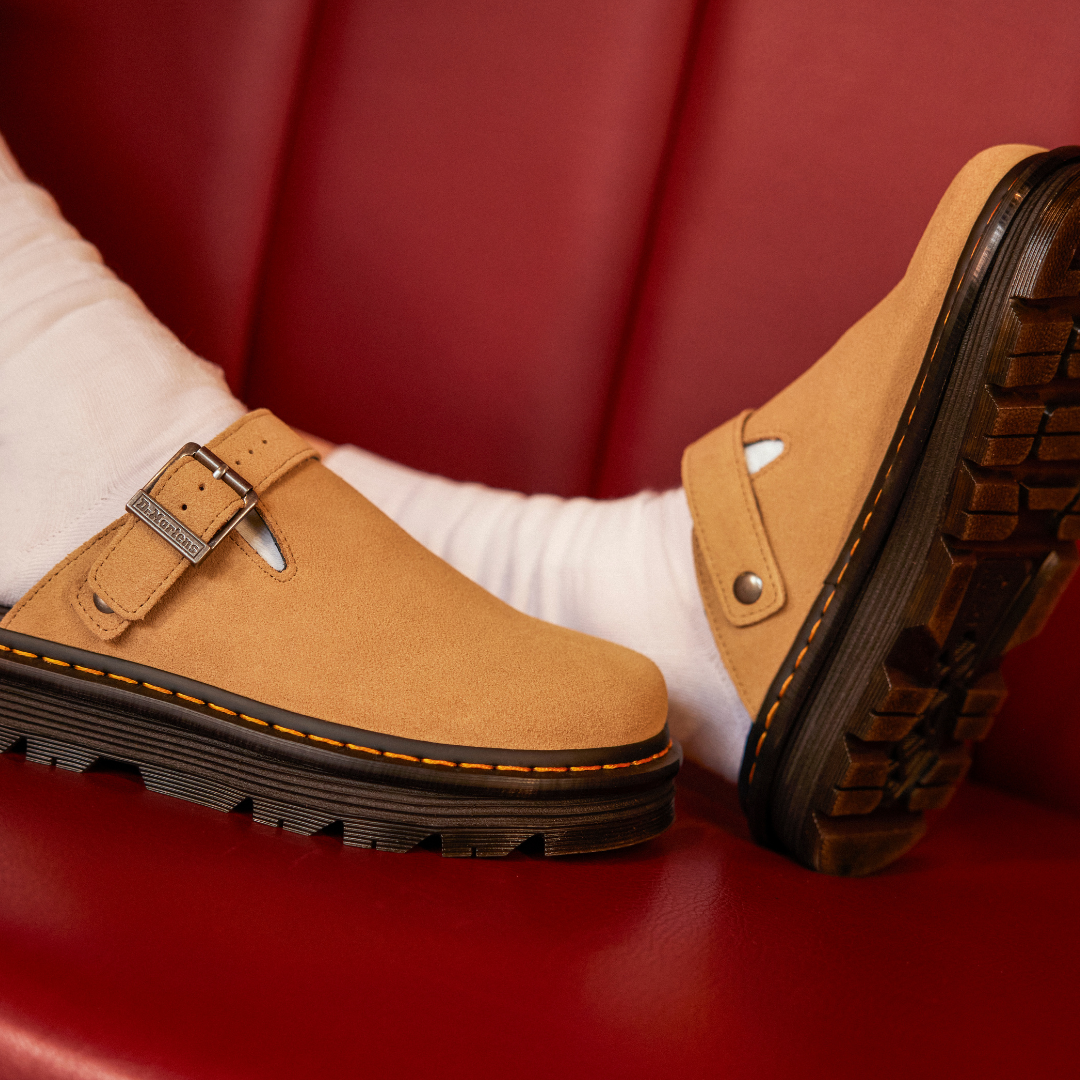 דגם Zebzag Mule הוא החידוש האחרון של Dr. Martens בעולם הנוחות. בנוי על סוליה היברידית מרופדת באוויר המשלבת EVA קל־משקל יחד עם PVC קשיח ועמיד. עשוי זמש איכותי ורב־שימושי, ומתאים לנעילה חופשית בכל עונה – בקיץ או מחוץ לעונה. הרצועה המתכווננת מבטיחה התאמה יציבה לכף הרגל, בעוד מבנה ה-Welt מספק עמידות לאורך זמן. תפר ה-Welt הצהוב האייקוני מסמן את הכפכפים כחלק בלתי נפרד מהמותג.
