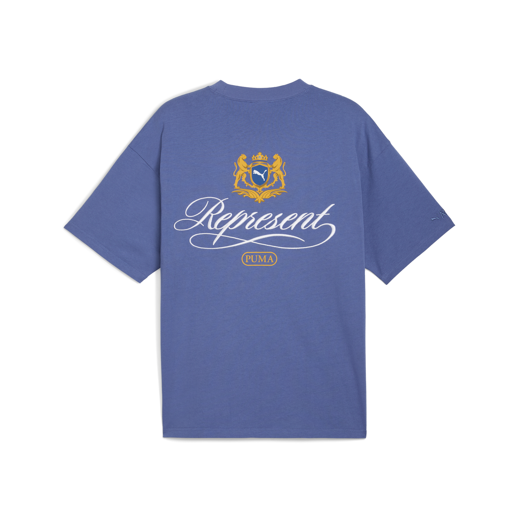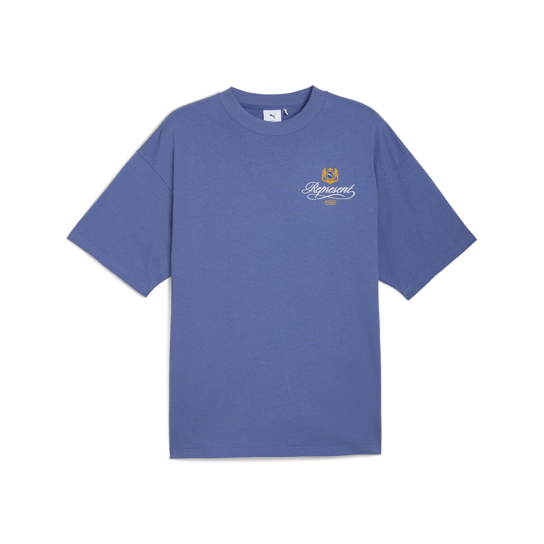 PUMA reunites with Represent for a collection that bridges football heritage with contemporary luxury. Rooted in Represent’s British streetwear identity and PUMA’s sporting legacy, the range presents elevated pieces with precise detailing – accompanied by two archive footwear icons: the King Indoor and the Super Team. In the rich Blue Dusk colourway, this graphic tee captures timeless craftsmanship and understated style.